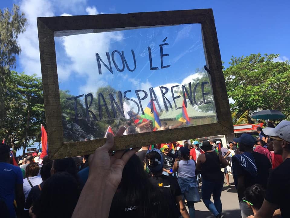 Photo: Navneesh Ramessur. It says ‘we want transparency’.